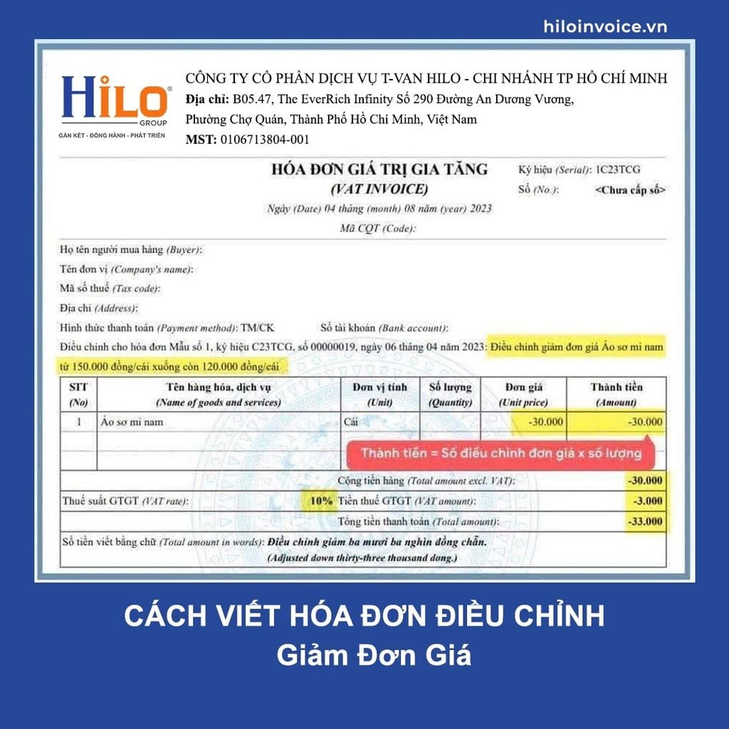 - Cách viết hóa đơn điều chỉnh giảm Đơn Giá