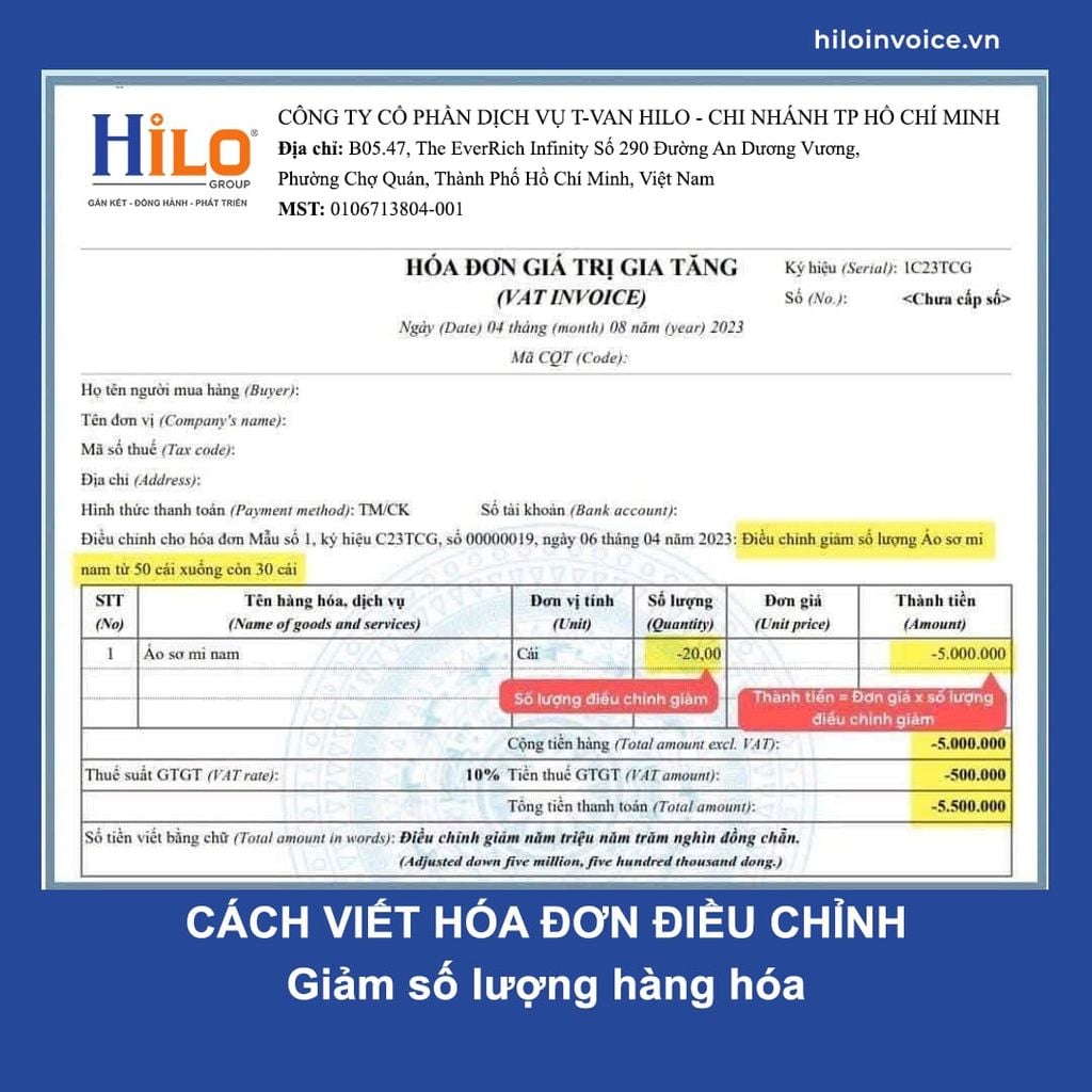 - Cách viết hóa đơn điều chỉnh giảm Số Lượng hàng hóa