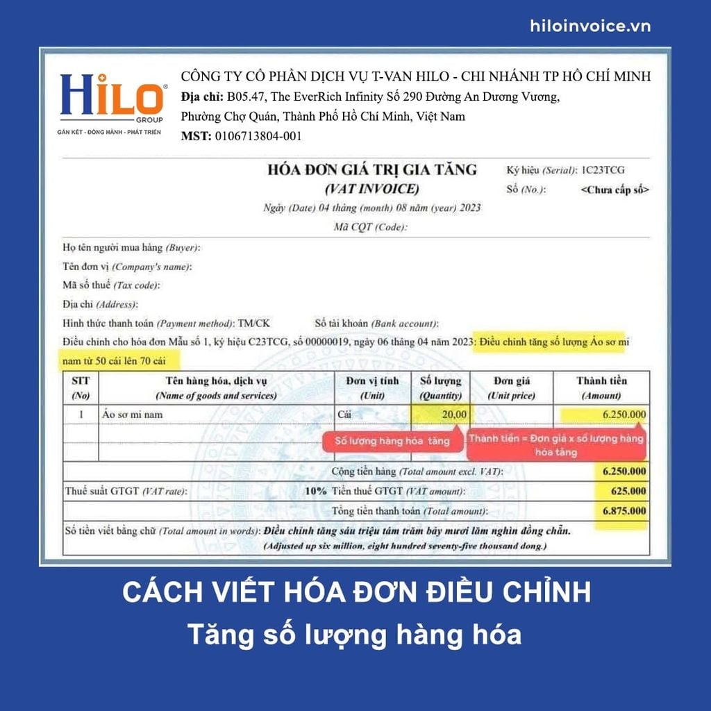 - Cách viết hóa đơn điều chỉnh tăng Số Lượng hàng hóa