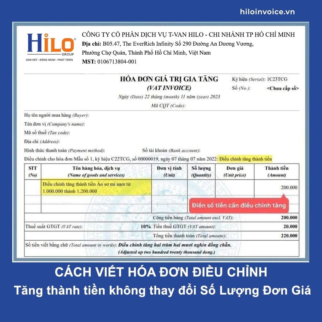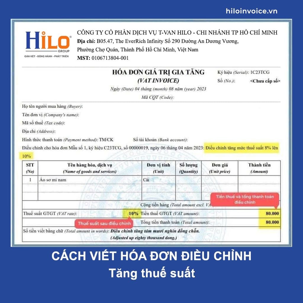 - Cách viết hóa đơn điều chỉnh tăng Thuế Suất
