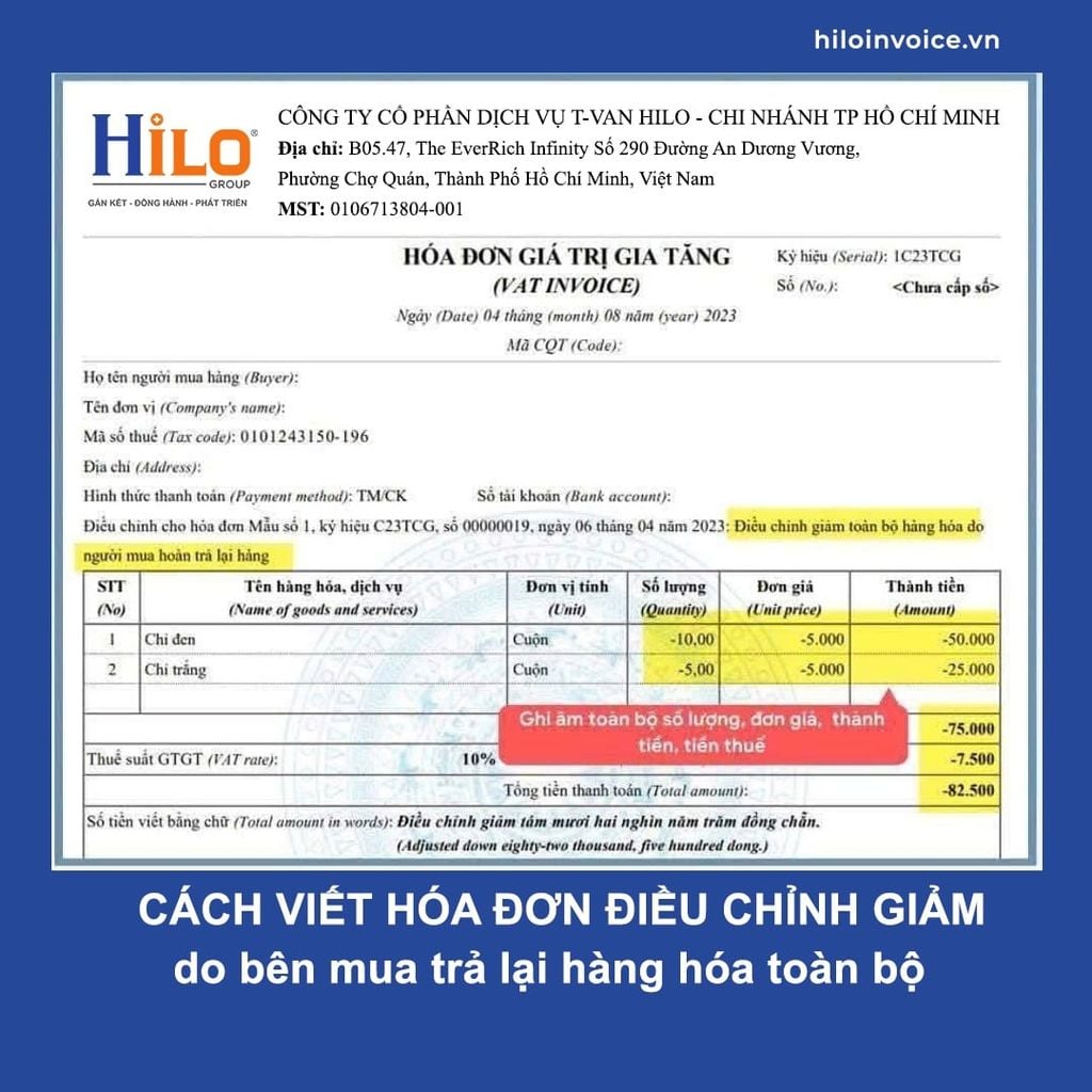 - Cách viết hóa đơn điều chỉnh giảm do người mua trả lại toàn bộ hàng hóa
