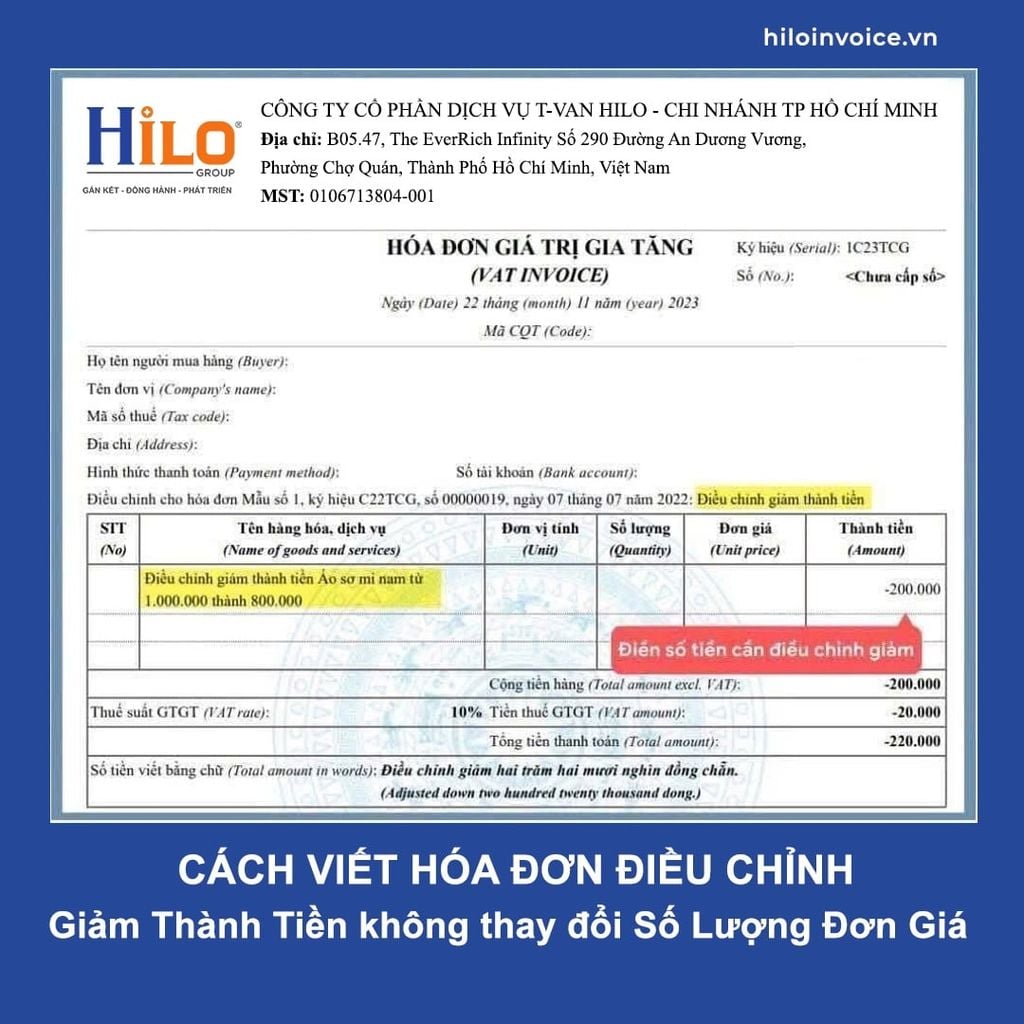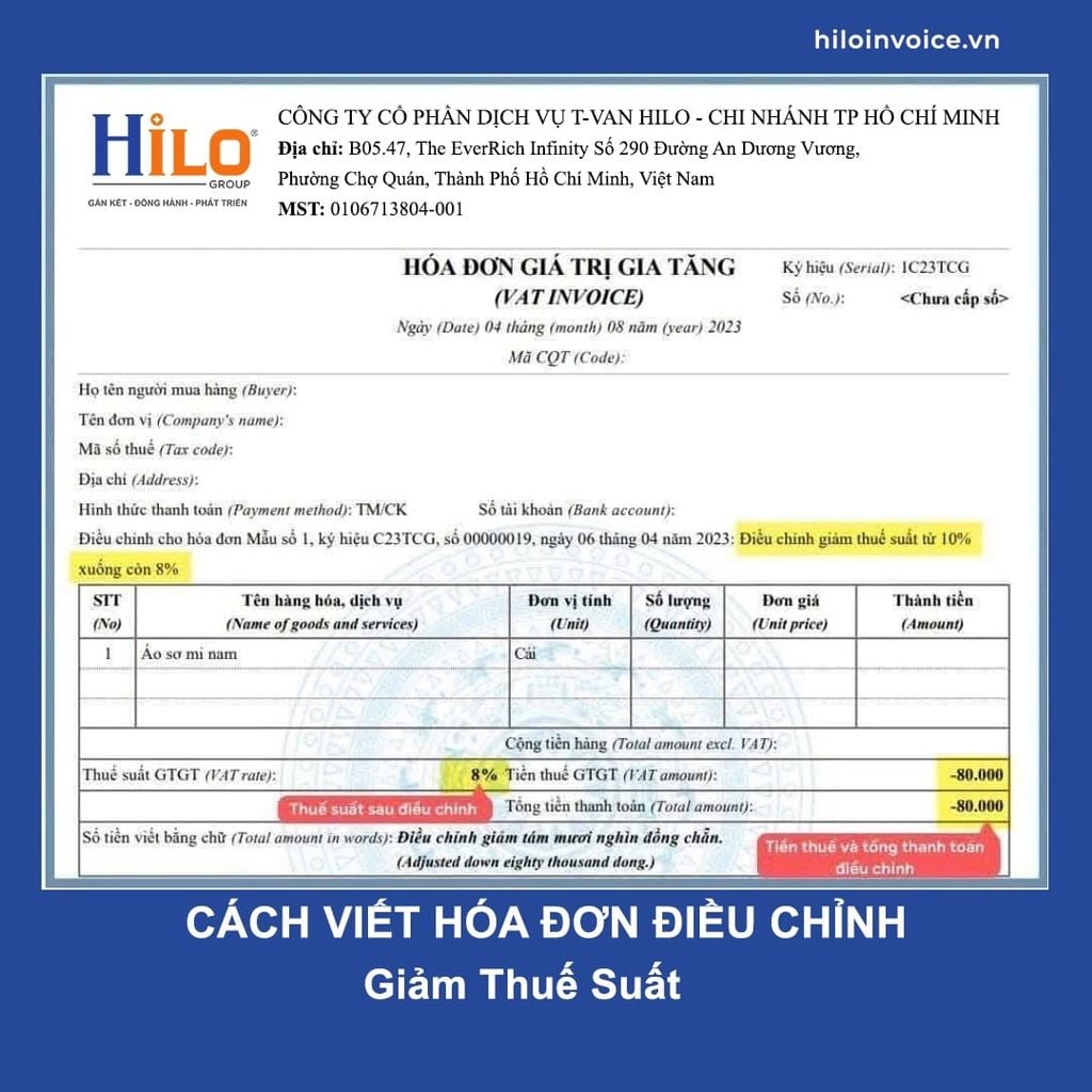 - Cách viết hóa đơn điều chỉnh giảm Thuế Suất