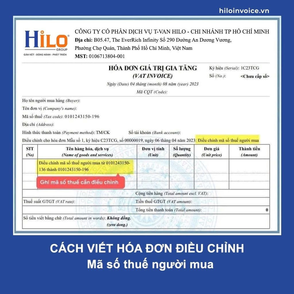 - Cách viết hóa đơn điều chỉnh Mã Số Thuế người mua