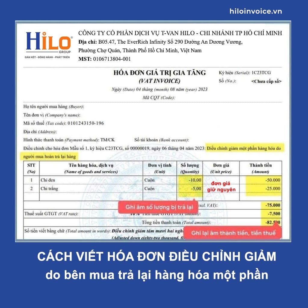 - Cách viết hóa đơn điều chỉnh giảm do người mua trả lại một phần hàng hóa
