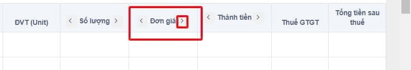 Trong một số trường hợp, thông tin về Số Lượng, Đơn Giá cần nhập số thập phân. Để nhập số thập phân trên phần mềm, nhấp chọn dấu mũi tên bên cạnh dòng tiêu đề tại các cột.